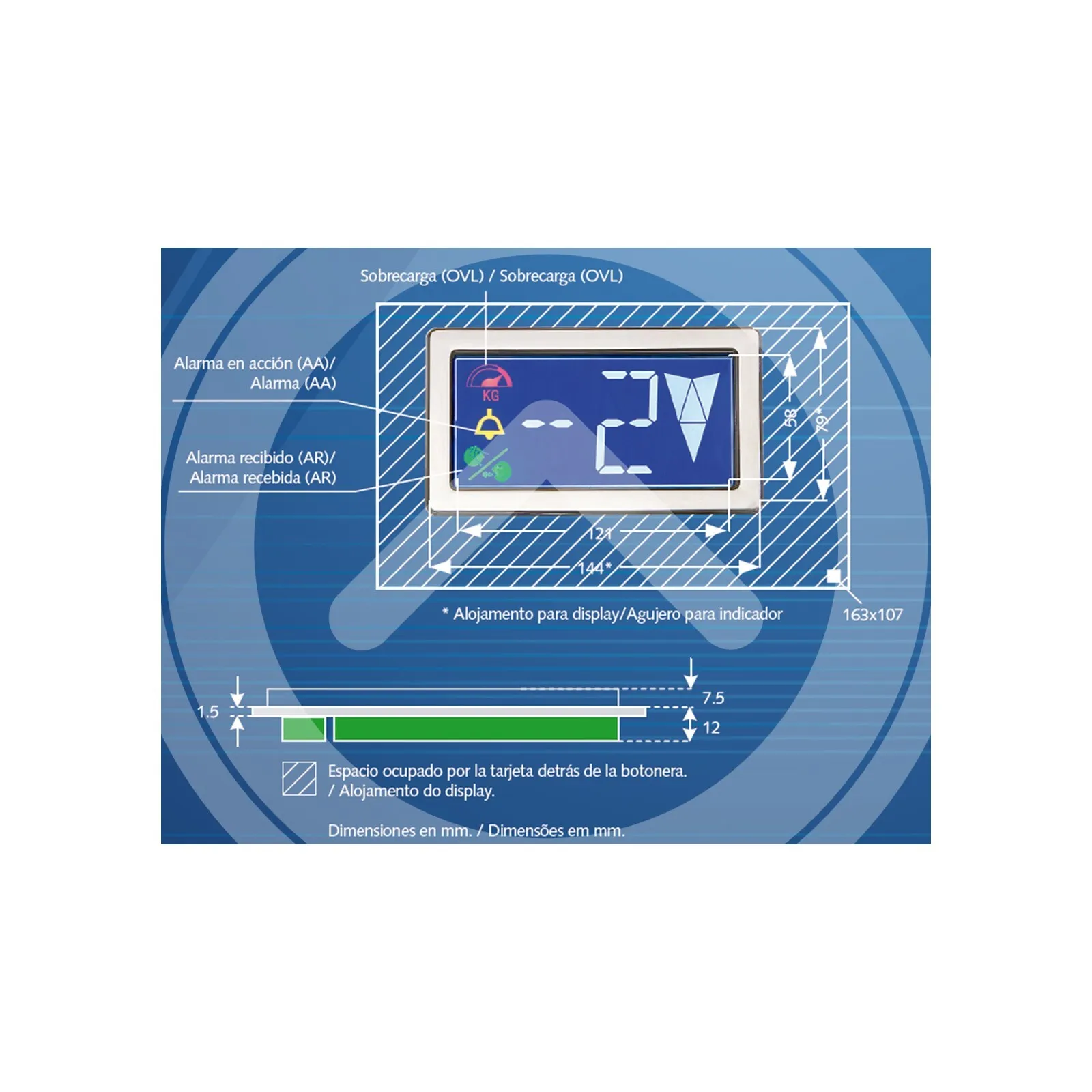 Display Indicador Tricolor 5,3′ Azul Autonomo 12-24V (530-A-Negativo Comun +Vin)