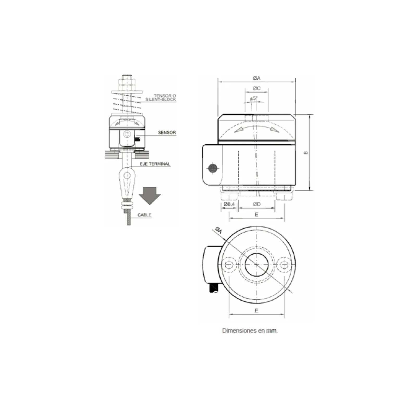 Sensor En Terminal De Cable Dinacell Pf-500 Cable Hasta 16,5Mm 500Kg. (13332)